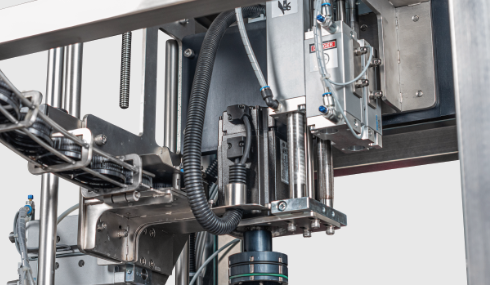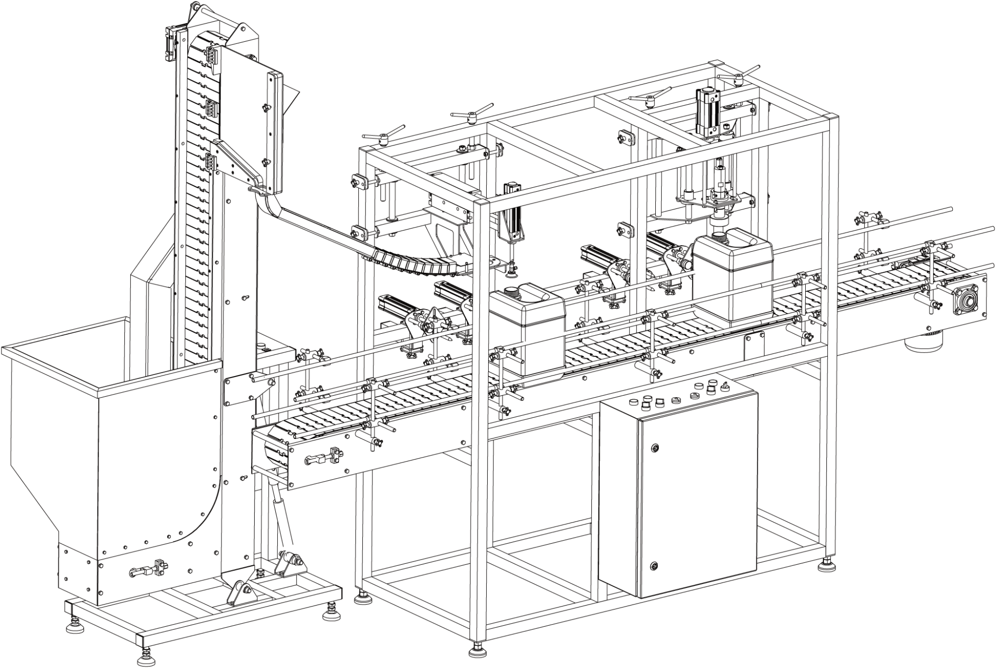 It tightens caps at the container neck with a certain force. Depending on caps assortment one may use changeable tightners. It may be equipped with the induction sealer.